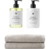 - Komplet sæt med håndsæbe, håndlotion og to gæstehåndklæder