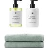 - Komplet sæt med håndsæbe, håndlotion og to gæstehåndklæder