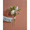 Med denne kunstige buket får du et gennemført og stilfuldt blomsterarrangement, der altid fremstår friskt. De detaljerede kronblade og varierede grønne blade skaber dybde og liv, mens de rolige farver bidrager til en afslappet og eksklusiv stemning i rummet.