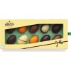 De flotte håndlavede chokoladeæg er fyldt med forskelligt velsmagende fyld, så der er variation i hver eneste bid. Æggene er flade på bagsiden, hvilket giver en flot præsentation i den aflange, gule æske – og gør dem nemme at servere, når der skal deles ud.