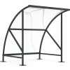 Det buede tag i akrylglas beskytter mod nedbør og lader samtidig dagslyset passere. Den ensidige udførelse med bagvæg gør løsningen velegnet til placering op ad bygninger eller i afskærmede områder. Skuret leveres som samlesæt og fastgøres nemt til underlaget.