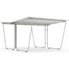 Den varmgalvaniserede stålramme beskytter mod korrosion. Det skrå tag i trapezformet stålplade beskytter mod nedbør. Skuret leveres som samlesæt til nedboltning.