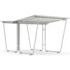 Den varmgalvaniserede stålramme beskytter mod korrosion. Det skrå tag i trapezformet stålplade beskytter mod nedbør. Skuret leveres som samlesæt til nedboltning.