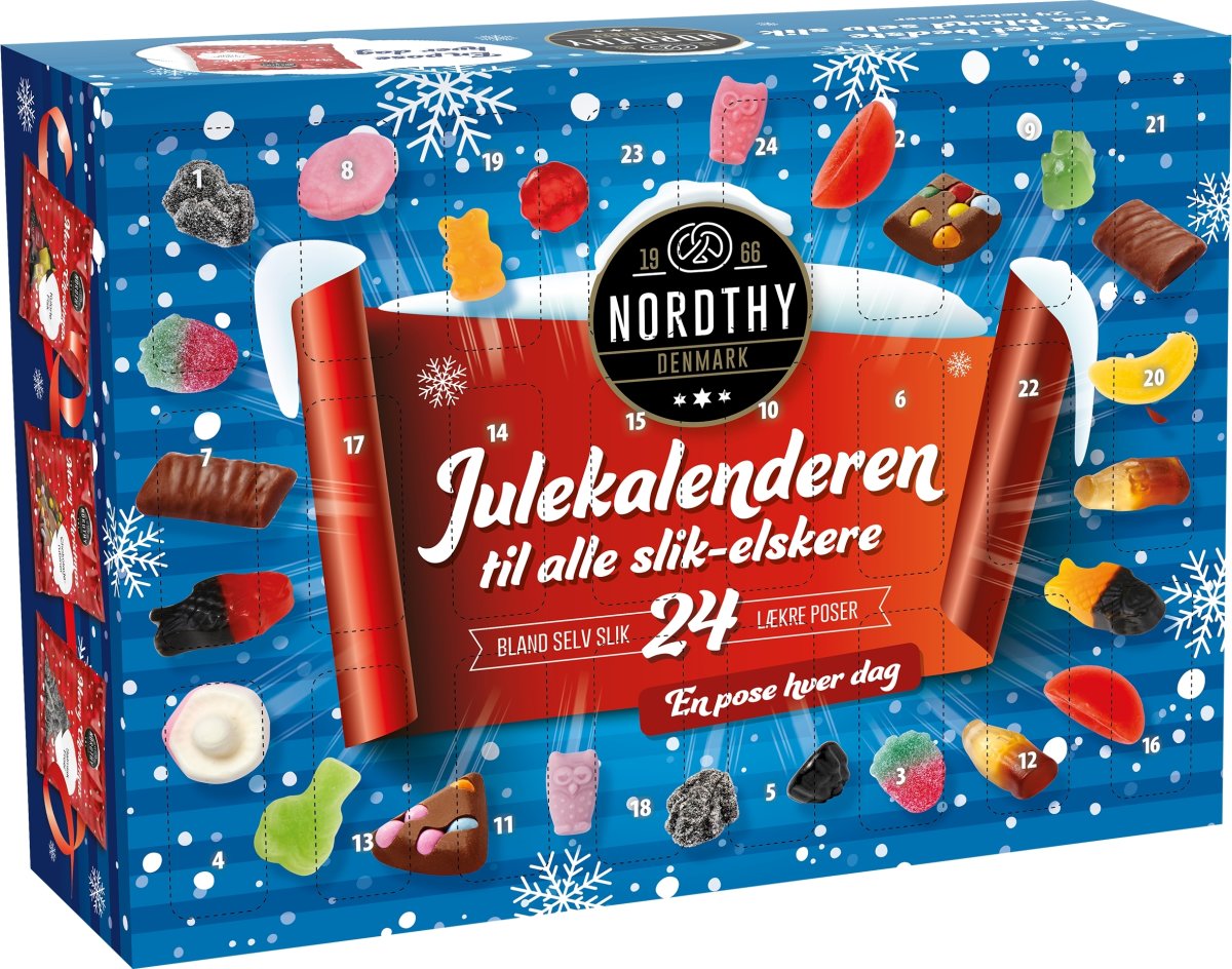 Bag hver låge finder du en af følgende lækkerier fra Nordthy i en lille rød slikpose, som skaber glæder og begejstring hver dag frem til juleaften: