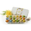 Forkæl med en hyggelig æggebakke fyldt med 12 flotte gourmetæg, der spreder forårsstemning med deres farverige udtryk. En oplagt lille påskegave – eller en sød detalje til påskebordet.