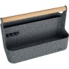 Indretningen med skillevæg og fleksible rum sikrer, at både større og mindre genstande holdes adskilt og organiseret. Den aftagelige bakke kan placeres direkte på skrivebordet ved behov. Det grå filtmateriale kombineret med trædetaljen giver et roligt og professionelt udtryk.