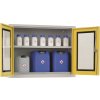 Kompakt kemivægskab til sikker opbevaring af vandskadelige og farlige stoffer i mindre beholdere. Skabet er fremstillet i pulverlakeret stål med to aflåselige døre og integreret opsamlingskar. Ideelt til arbejdspladser, hvor pladsen er begrænset, og overblik er vigtigt.
