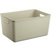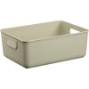 Seriens karakteristiske rillede overflade og integrerede håndtag giver et genkendeligt og funktionelt udtryk, samtidig med at boksen er nem at gribe og flytte. Akita kan bruges som åben opbevaring eller med det matchende låg, der giver en mere diskret og lukket løsning. Både bokse og låg er fremstillet af 100% genanvendt plast og er robuste og lette at rengøre.