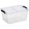 Den gennemsigtige plast gør det let at se indholdet, og boksen kan stables for at udnytte pladsen bedst muligt. Serien fås i flere størrelser, som kan kombineres.