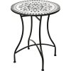 Bordet er fremstillet med en kraftig jernramme og en solid mosaikplade, som både er dekorativ og slidstærk. Den matte sorte finish på stellet fuldender det stilrene udtryk og gør bordet let at matche med forskellige typer havestole.