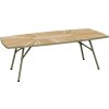Det solide stel er pulverlakeret i en dæmpet taupefarve, som komplementerer teaktræets varme toner og patinerer smukt over tid. Bordet er udført i vejrbestandige materialer og kræver kun minimal vedligeholdelse.
