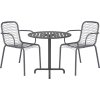 Sættet er oplagt til dig, der vil have et cafésæt, der bare kan blive stående ude, også når vejret skifter. Bordpladen er robust og praktisk, så du slipper for at tænke på opbevaring i kælder, loft eller under halvtag.