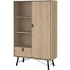 Serveline vitrineskab kombinerer elegant opbevaring med mulighed for flot fremvisning. Med to døre, heraf en glasdør ,og en praktisk skuffe, får du både skjult og synlig opbevaring i ét stilrent møbel, der passer perfekt til stue, spisestue eller kontor.