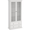 Serveline vitrineskab er en elegant og funktionel opbevaringsløsning, der kombinerer klassisk design med praktisk anvendelighed. Med to døre med glas til fremvisning, samt to rummelige skuffer, får du både synlig og skjult opbevaring i ét møbel.